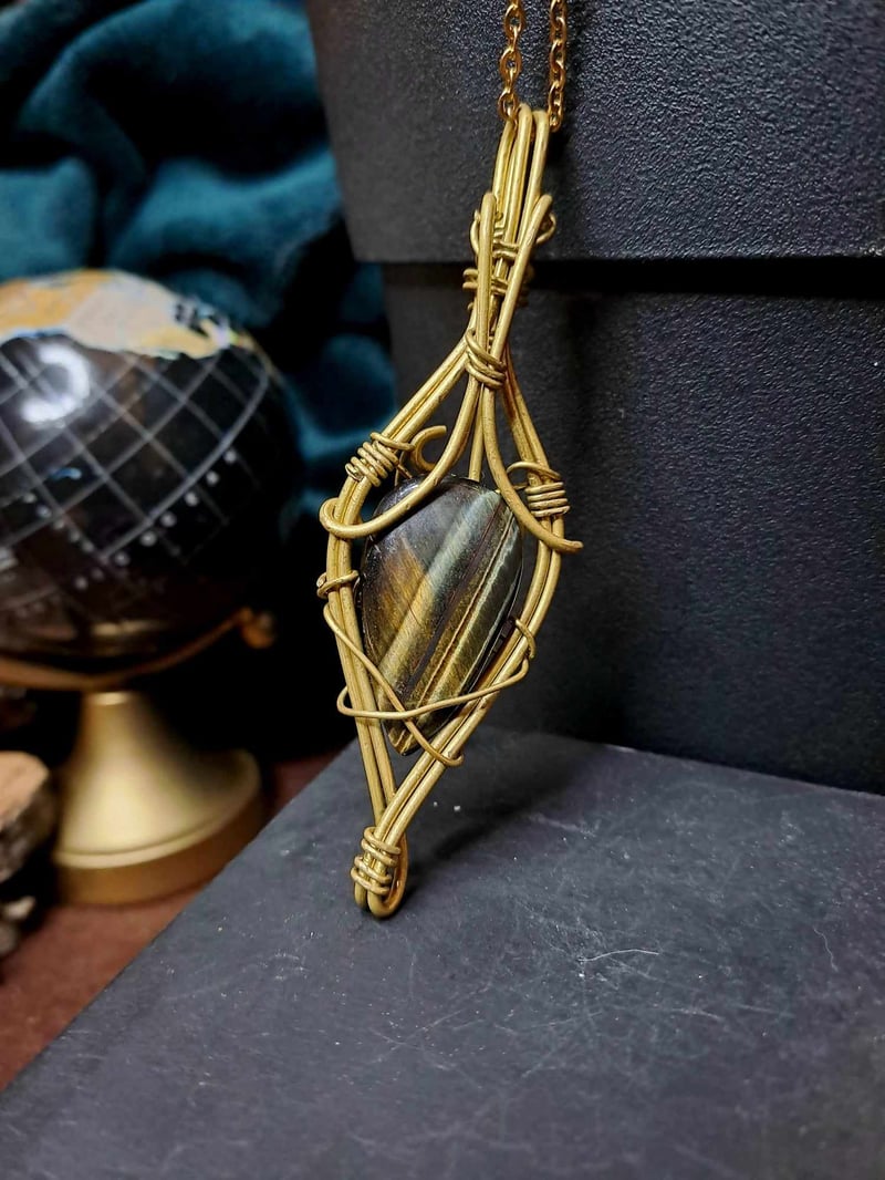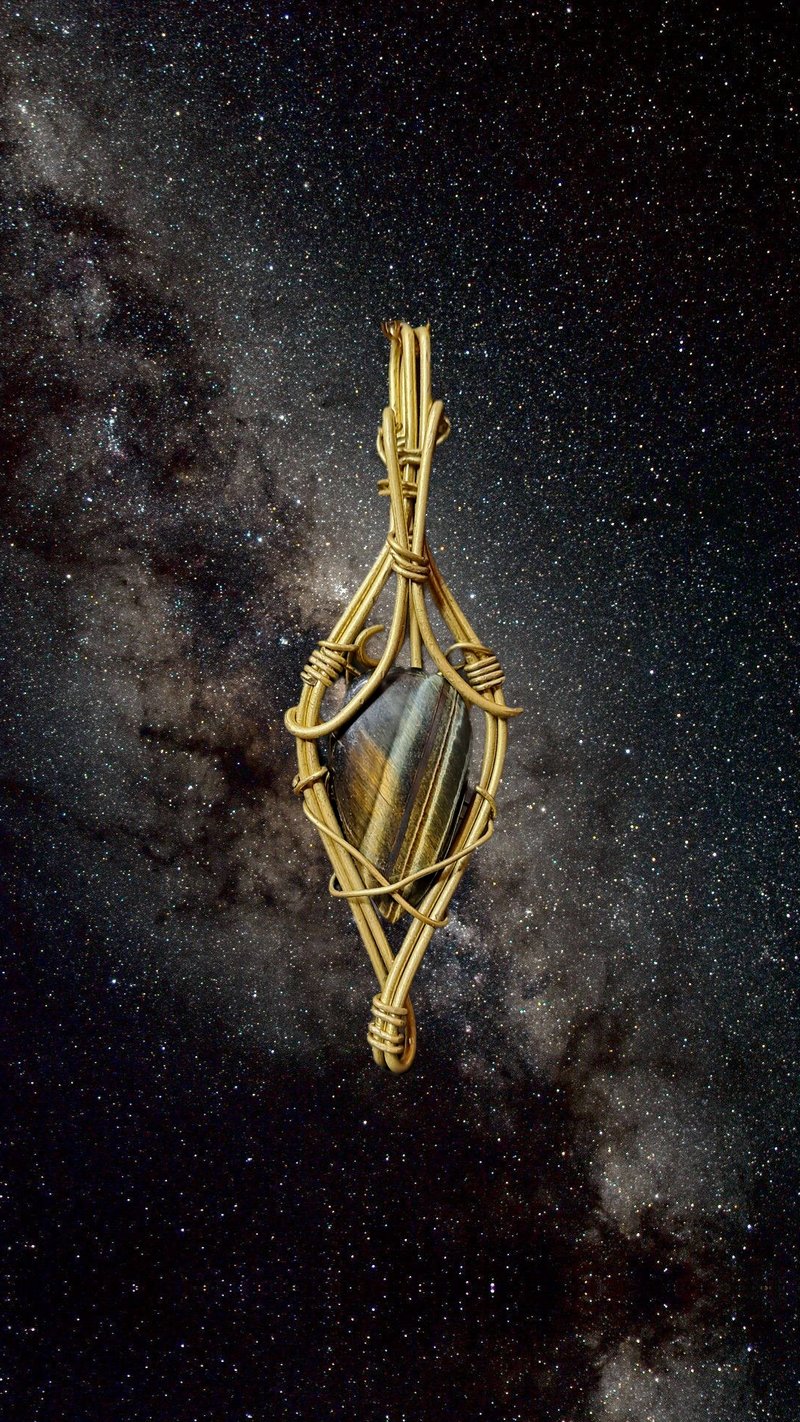 Una pietra che guarderei per ore, quando esposta al sole regala riflessi meravigliosi per ogni minimo movimento, per la quale ho scelto un intreccio semplice e selvaggio, ma allo stesso tempo elegante e misterioso.